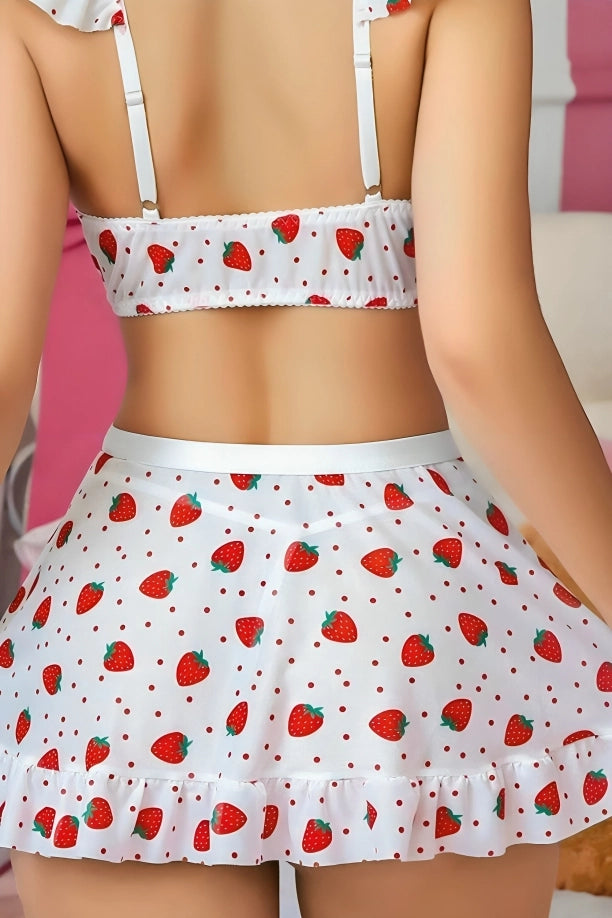 2-Pieces Set: Top & Skirt with Strawberry Print.