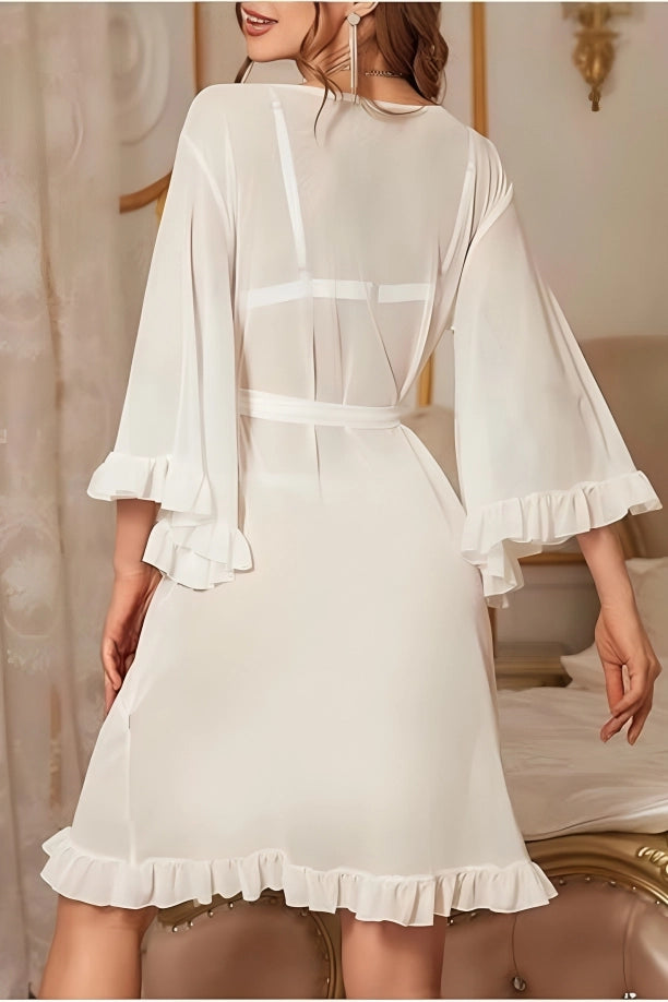 3-Pieces White Lingerie Set: Bra & Panty with Matching Sheer Robe.